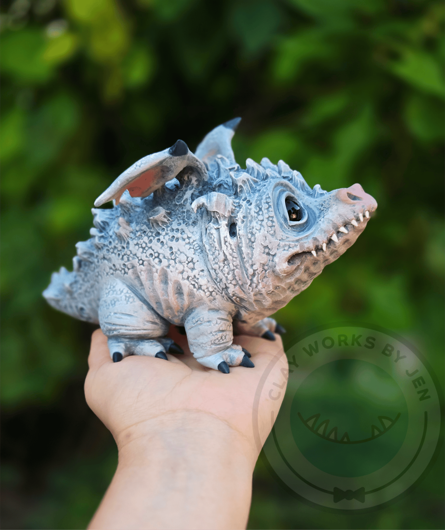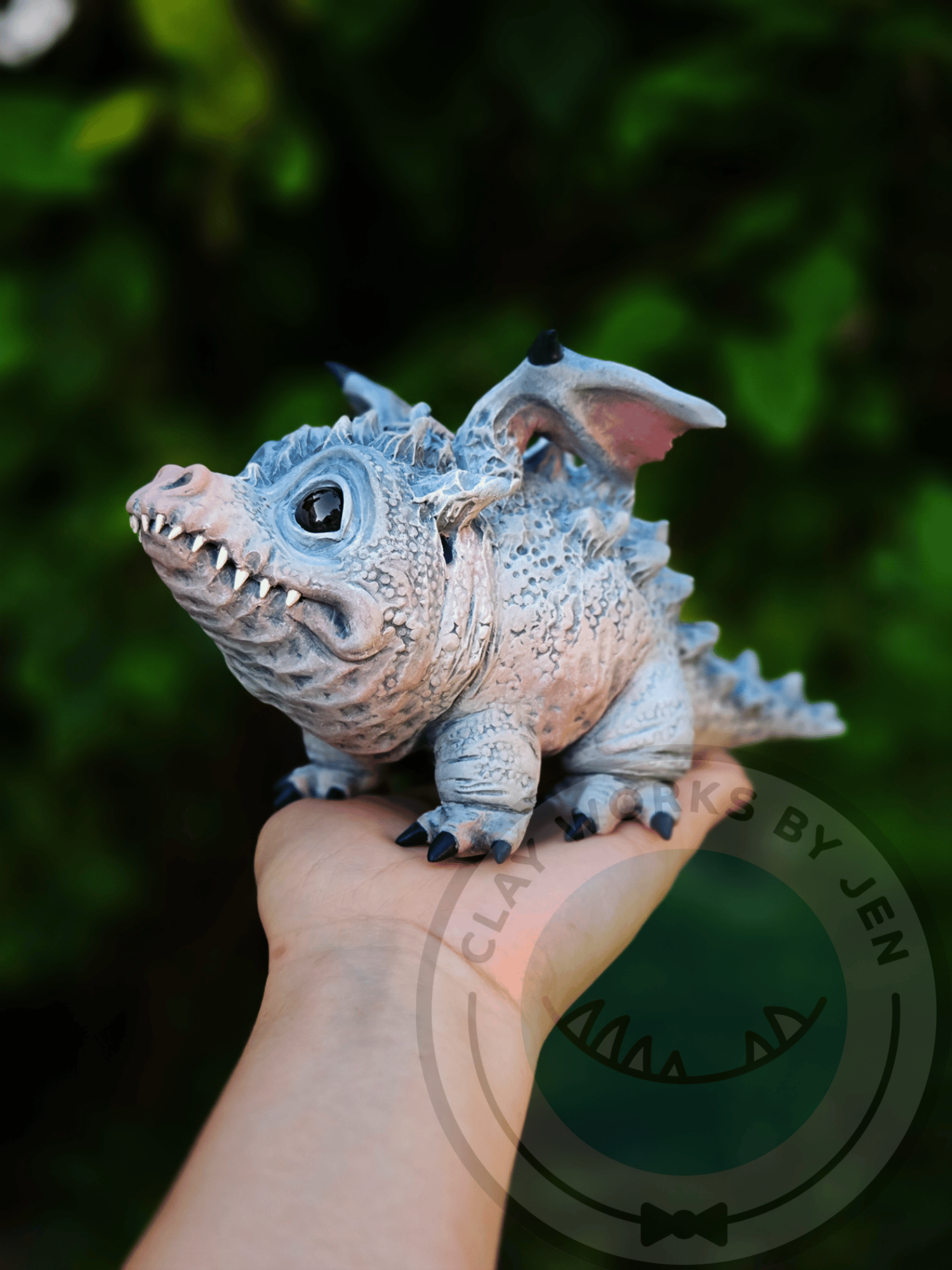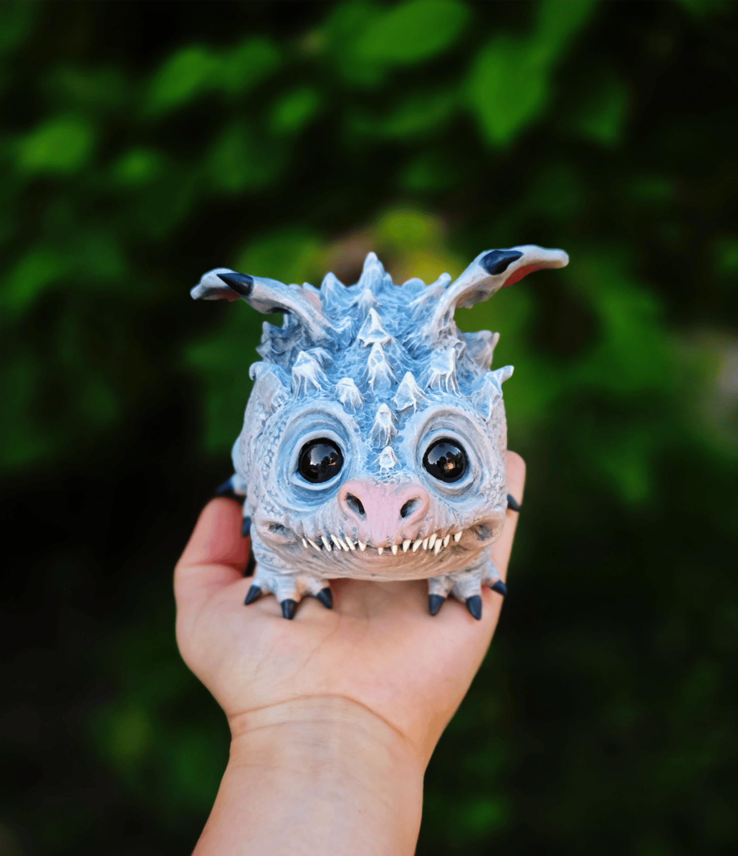 Blue Spruce is a one of a kind winter dragon of my own design. He was made with polymer clay, glass eyes, epoxy clay, heat set paint and LOVE!!