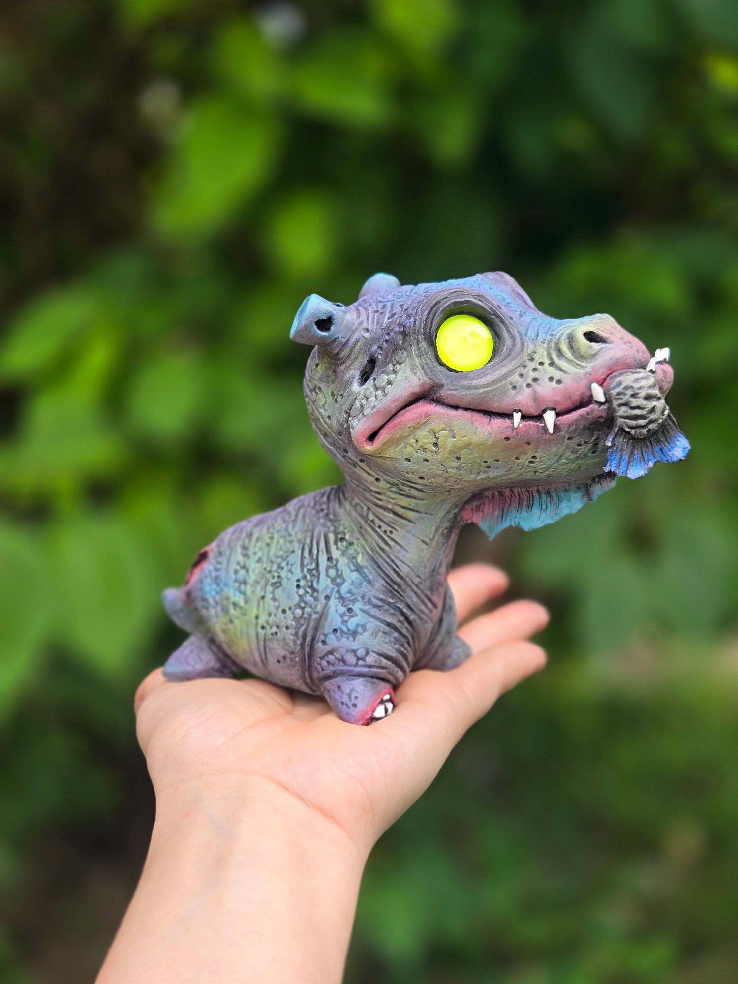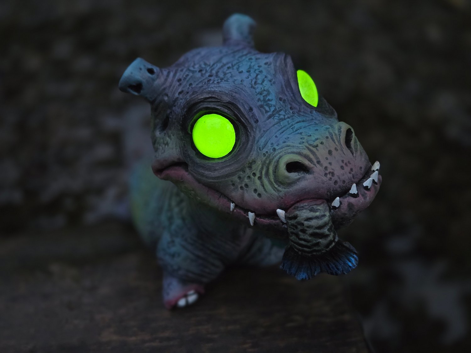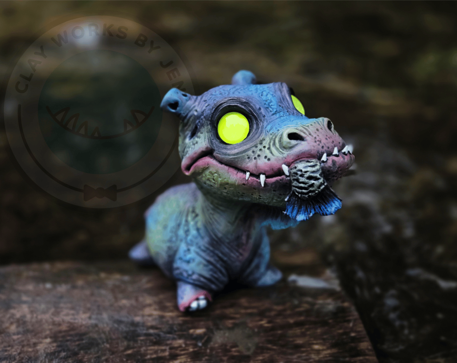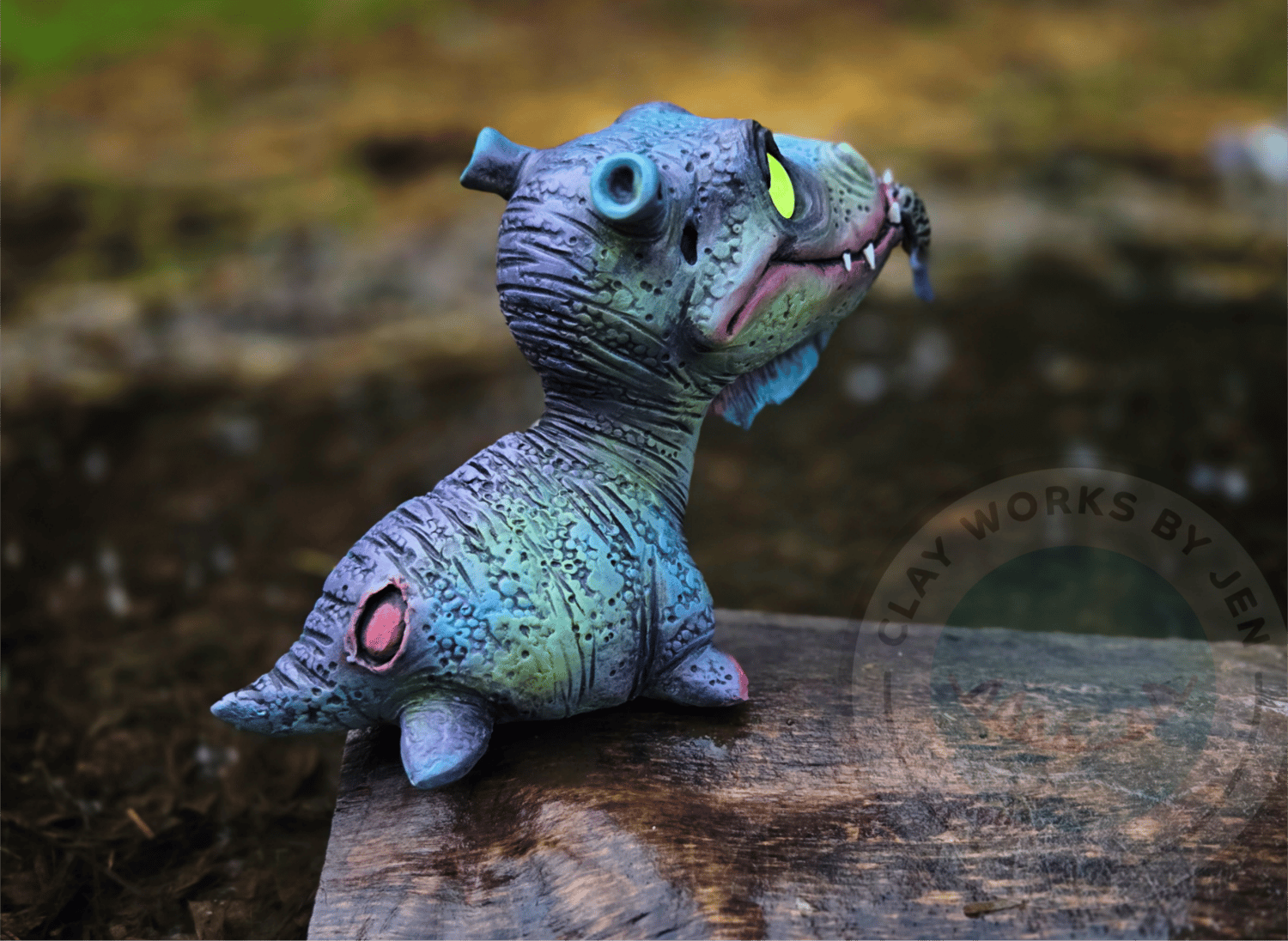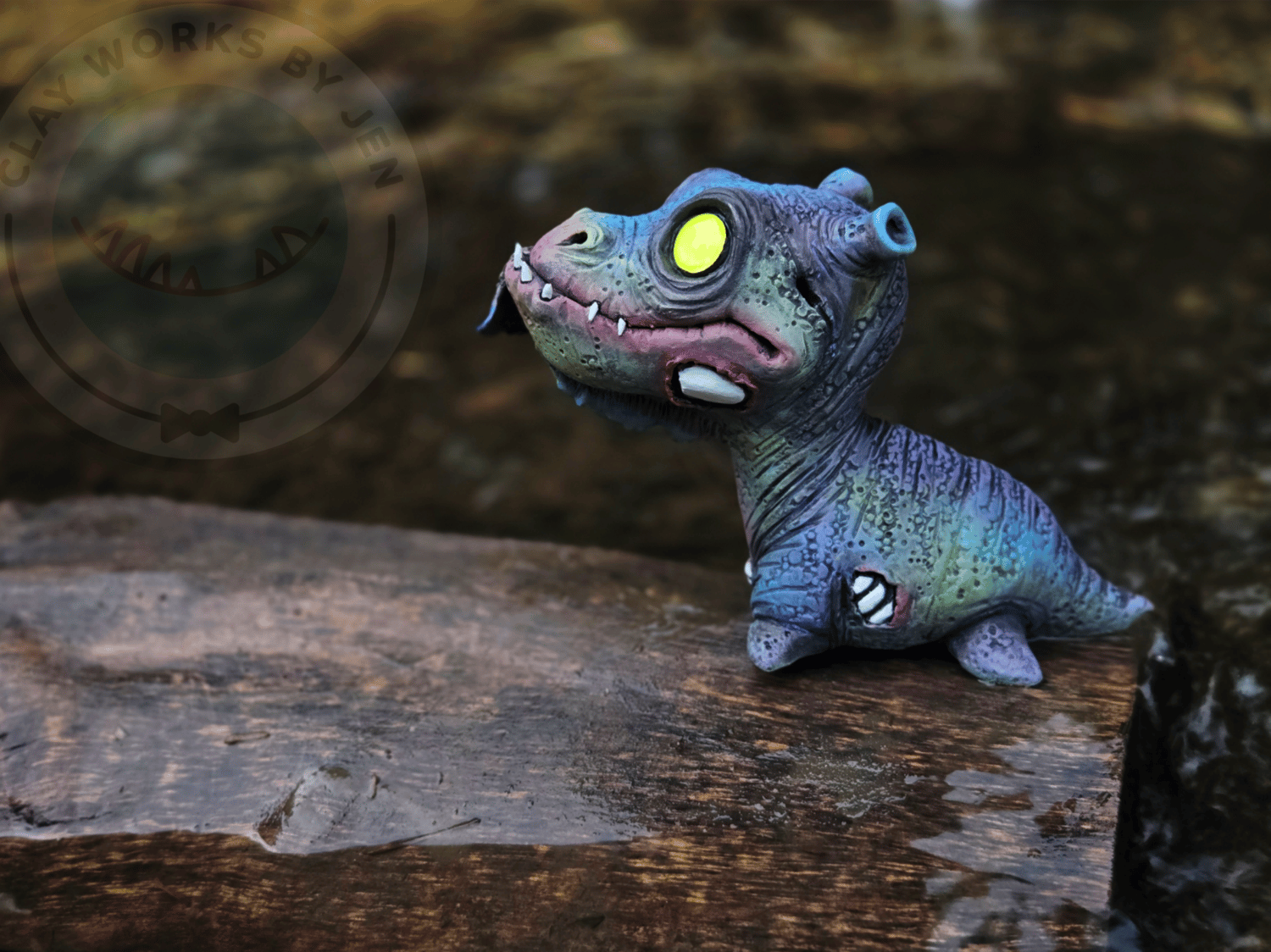 Zeek is a one of a kind Noggin Tots Ness of my own design. He was made with polymer clay, glass eyes, epoxy clay, heat set paint, gloss glaze, uv glow powder and LOVE!!
